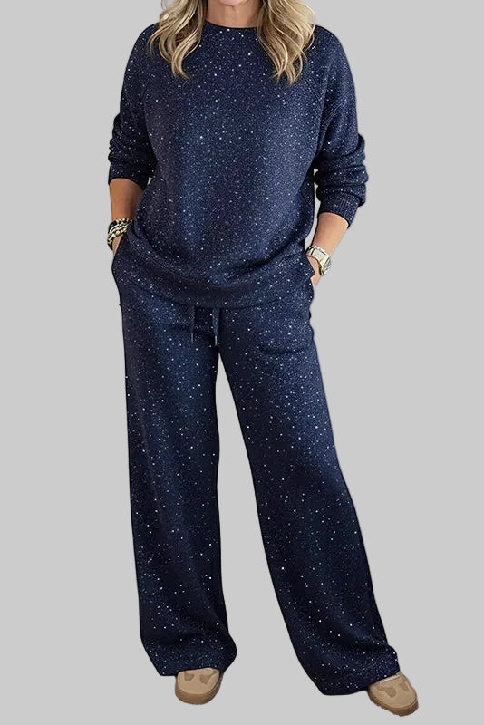 Elegance, der flyder – og et skær af glans, der fanger blikket. Nora-sættet er designet til at få dig til at skille dig ud uden anstrengelse. Det kombinerer et blødt stof med fine glitrende detaljer, der løfter ethvert outfit. Den behagelige følelse og det smukke fald gør det til det perfekte valg, når du vil stråle uden at give afkald på komfort.