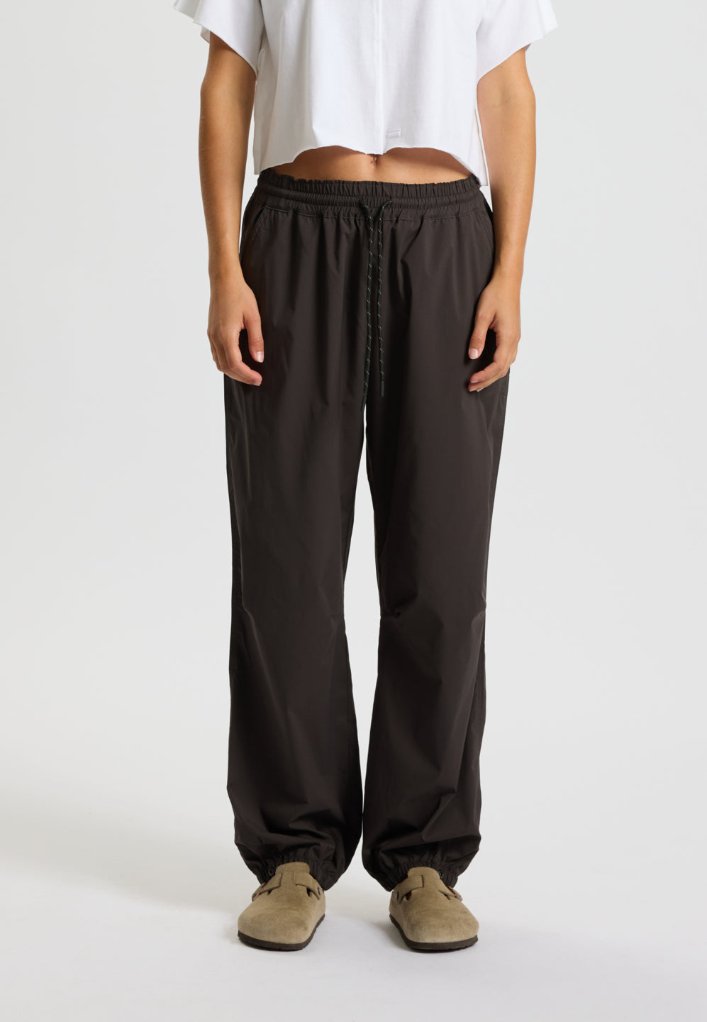 Træningsbukserne er i genanvendte materialer, som er både vind- og vandafvisende. Bukserne har praktiske lommer og en justerbar elastik i taljen, så de sidder behageligt samt trykknapper ved buksebenet, så du kan justere bredden. Som en cool detalje, har de dekorative folder ved knæ og ankler samt et broderet logo ved sidesømmen.